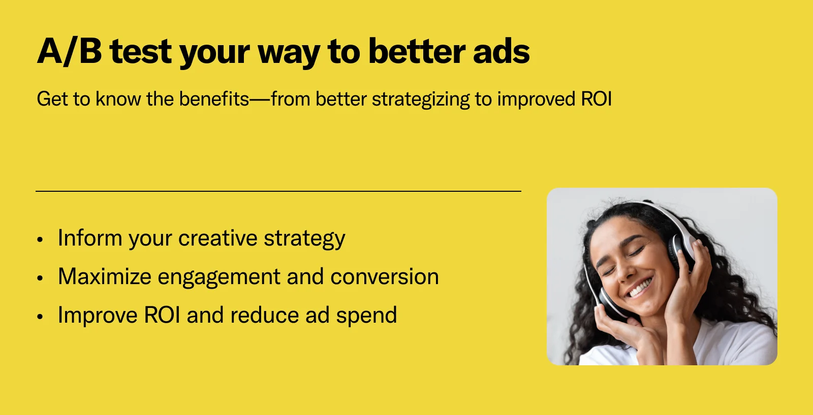 For example, you might test two versions of an ad and discover that one of them generates 40% more conversions. By allocating your budget toward the winning ad’s formula, you can increase the ROI of your campaign—while also understanding what’s likely to work again for the next campaign.