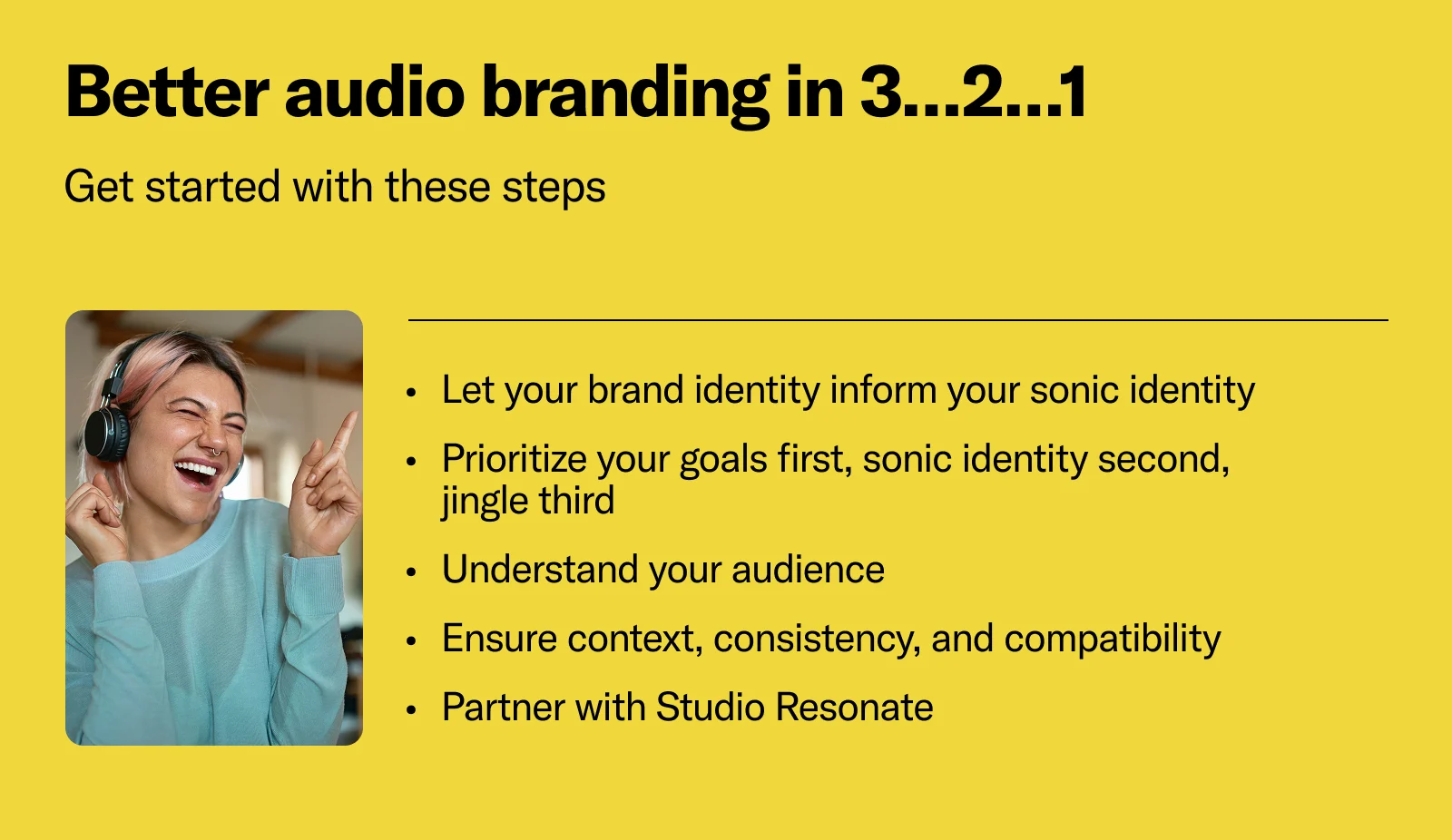 With an audience of 170M listeners, leading solutions, and the creative minds behind Studio Resonate, we have the reach, platforms, and expertise to bring your audio branding to life. 8