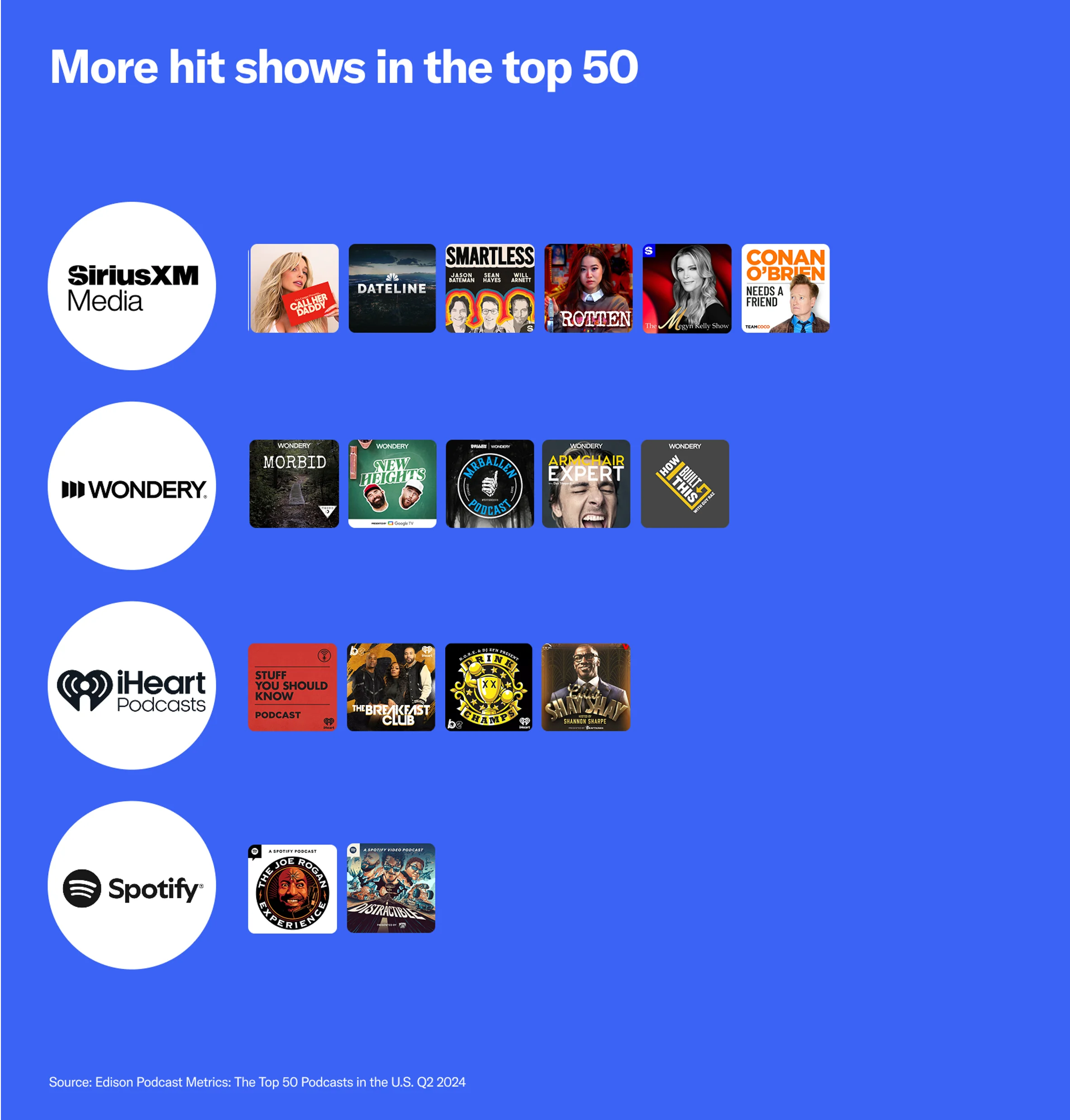 The SiriusXM Podcast Network is your brand's one way ticket to reach them. We’ve got more shows in the top 50 than any other podcast network—with iHeart taking third place in the count. On top of that, we’re #1 with women and #1 with listeners 55+, reaching 20% more than the next podcast network. And did we mention we’re a leader among listeners 13+? Putting you in touch with the right audiences no matter the genre or the generation.