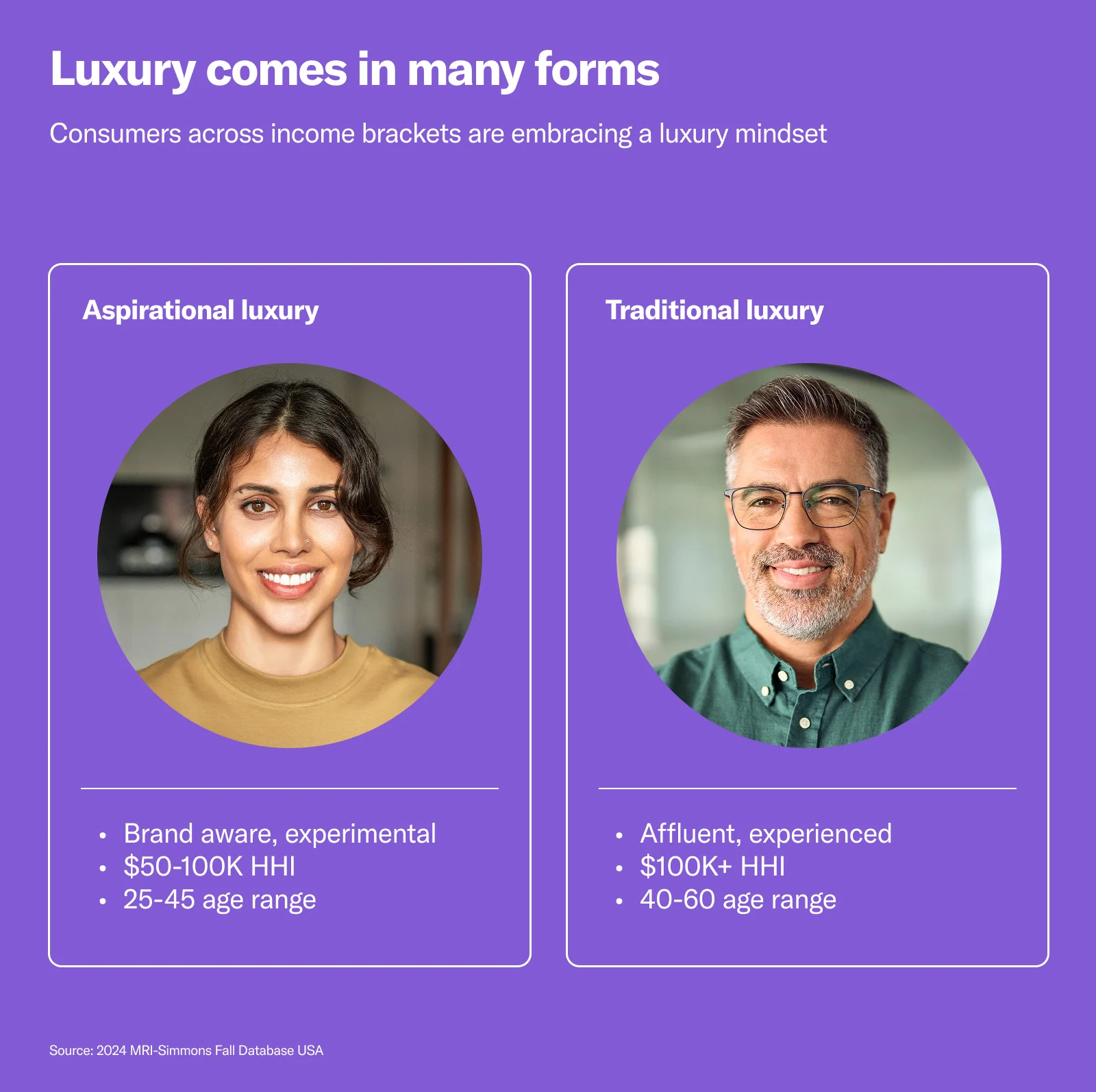 It’s not all about labels and price tags. There are two types of luxury consumers: aspirational and traditional, each defined by a distinct household income (HHI), age range, and preferences.