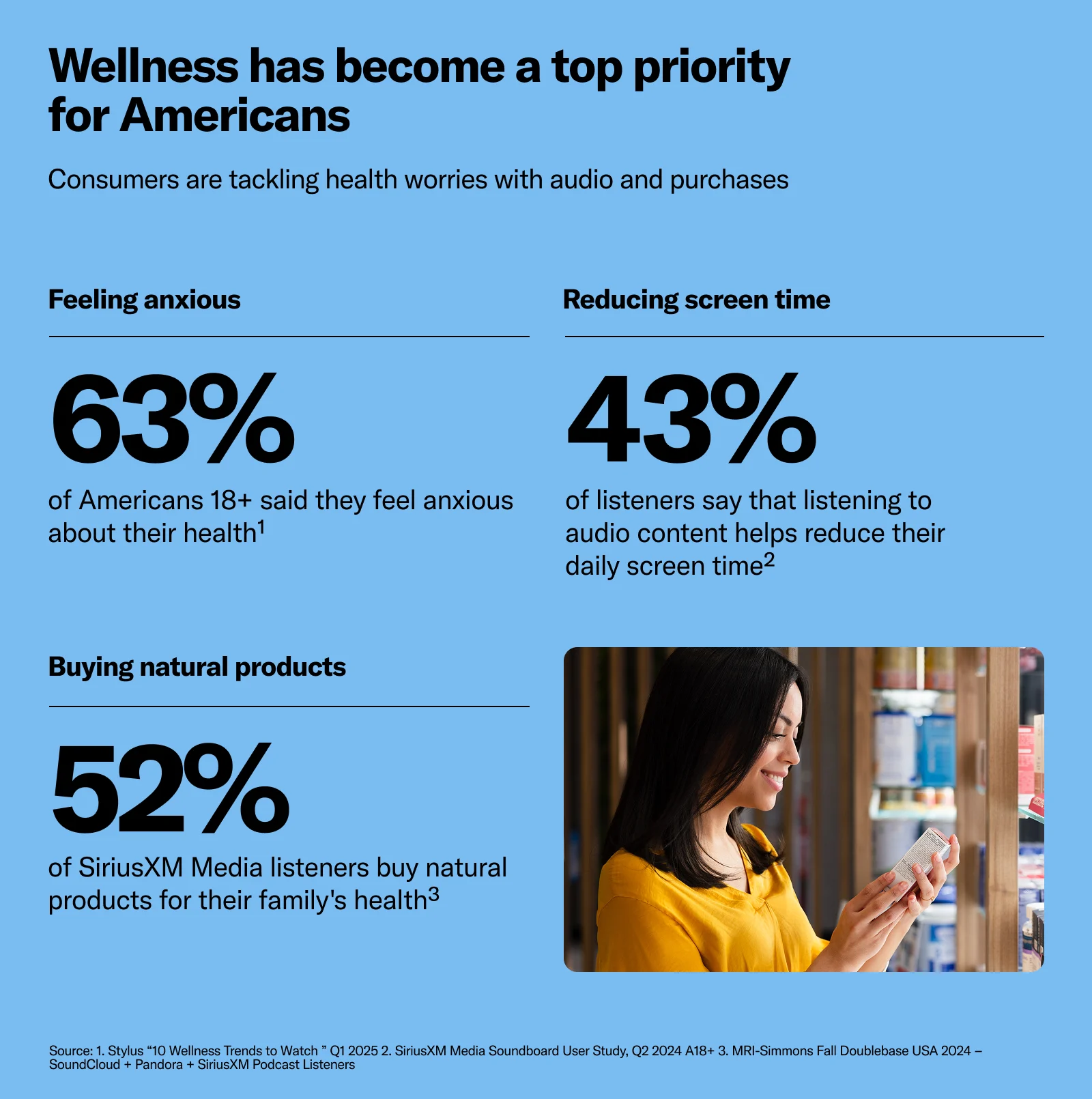 As the podcast landscape itself is rapidly growing, so is the audience segment that is actively invested in their well-being. Recent years have brought more uncertainty, leading to a surge in the health and wellness podcast genre, which has seen +50% growth from 2019 to 2024. Listeners who are plugged into wellness content consider their health to be a core value, not a fleeting trend.