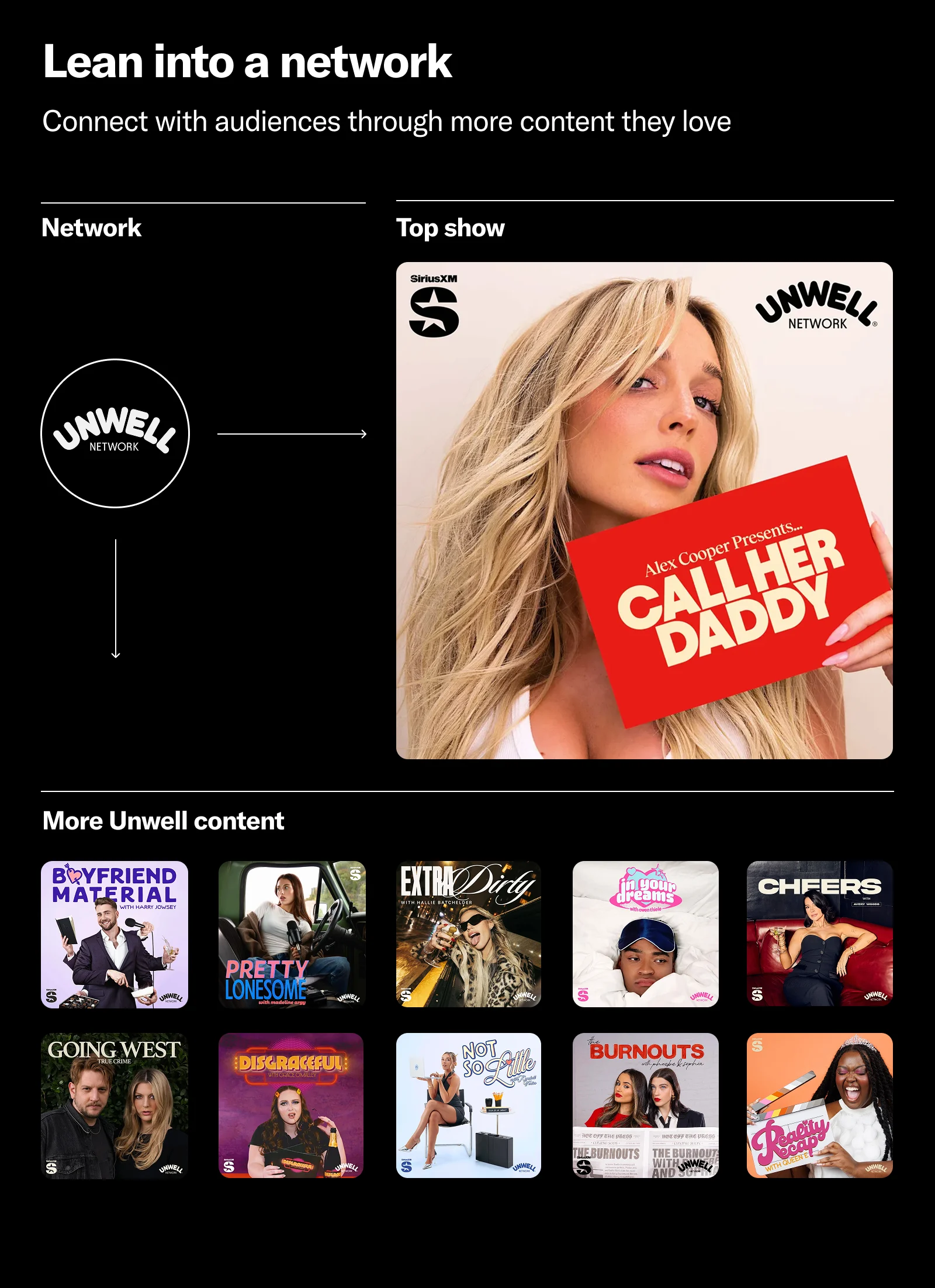 At SXM Media, we’ve been focused on scale because we want to make it even easier to navigate the most meaningful areas of the podcast landscape. Simply put, advertisers need options for maximizing the reach and efficiency of their ad dollar. Having access to SXM's industry-leading scale allows for more options and greater flexibility to hit your objectives. Get in touch with us today to learn more.