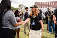 State Farm’s branded hydration station provided attendees with water bottles to keep them hydrated throughout the day. And for every water bottle distributed (5K), they donated one to Second Harvest Food Bank (5K), bringing real impact to the community on campus and beyond. Students and alumni could scan a QR code on each bottle to learn more about the organization and how to get involved—creating a seamless bridge between on-site engagement and ongoing community service.