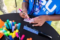 The Home Depot brought local talent and school spirit together by partnering with TSU alum and artist, Christian Green, to create a custom mural using materials sourced from The Home Depot. The mural captured the energy of the university and turned the brand’s footprint into a vibrant hub of creativity and pride. Meanwhile, branded umbrellas and high tables kept guests shaded and comfortable while they designed and colored their own mini mural stickers, adding their personal touch to the art wall.