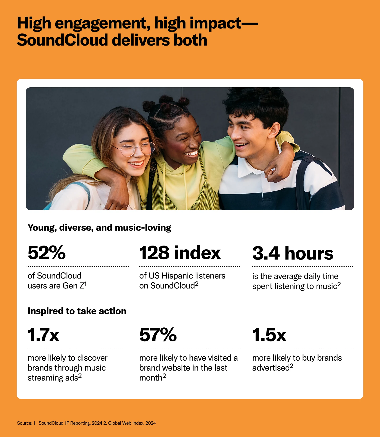 SoundCloud is the destination for the music-obsessed. Nearly two in three SoundCloud listeners say that music is part of who they are, and one in two say music is the soundtrack to their lives. Music has a profound impact on shaping cultural identity, and it begins with SoundCloud. It’s the platform where trends are born and movements are made, redefining modern-day music and audio culture.