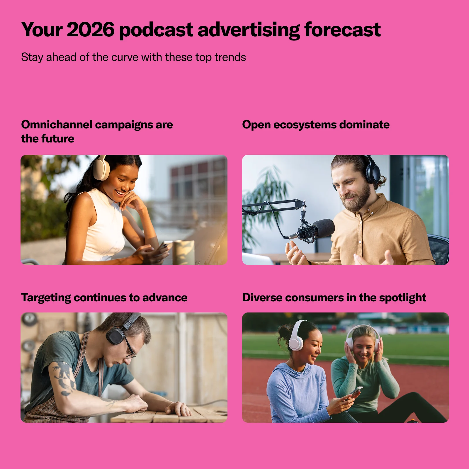 As we look ahead to 2026, the podcast landscape continues to evolve. Whether you're a seasoned investor in podcast advertising or exploring the medium for the first time, understanding the emerging trends—from increasing omnichannel campaigns to a more enhanced AI presence—will help you stay ahead of the curve.
