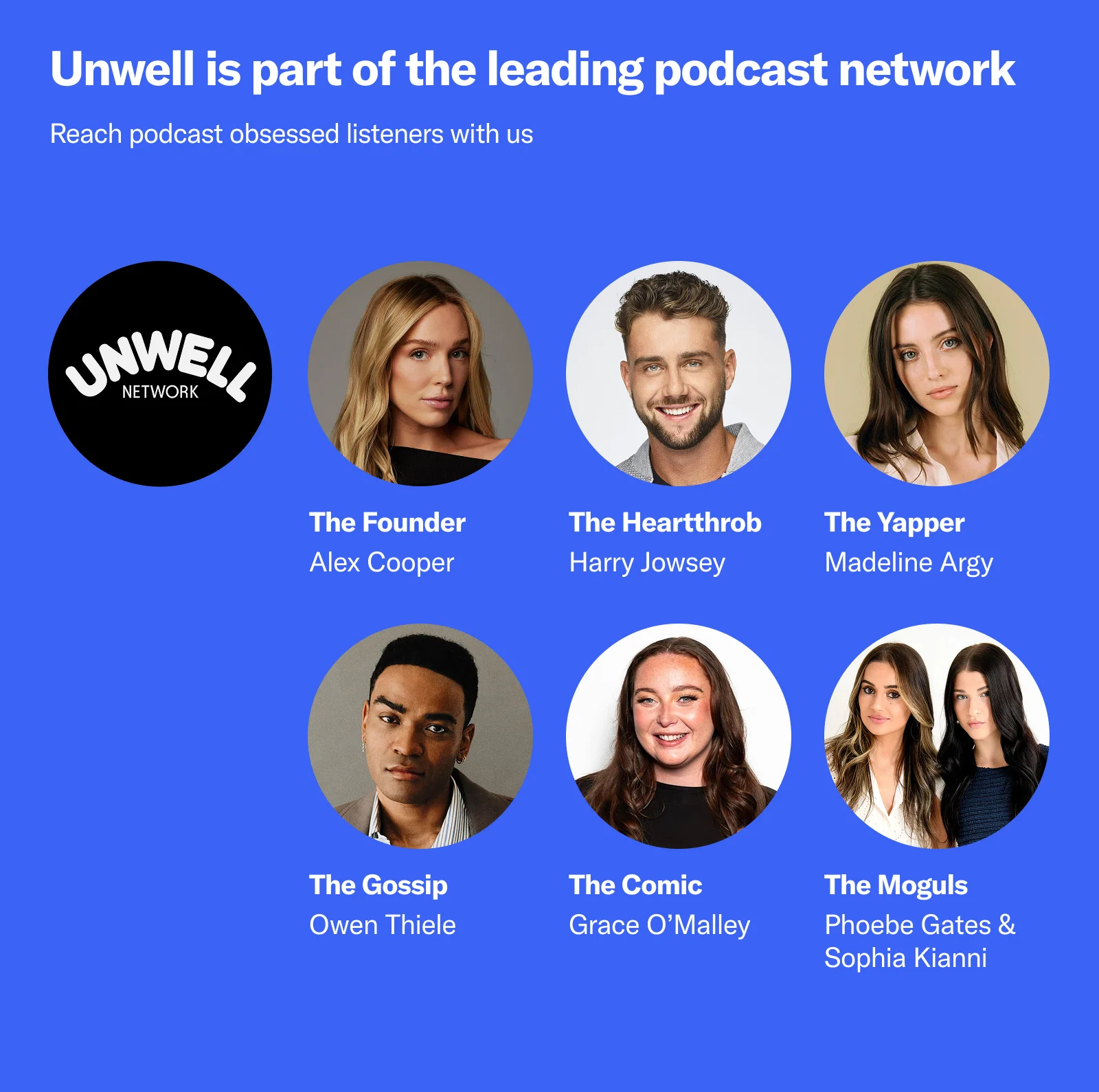 And this is where influence actually moves the needle for brands. Unwell’s listeners aren’t passive, they’re plugged in, loyal across platforms, and ready to make a move when a host makes a recommendation. It’s more than a network, it’s an opportunity for advertisers who want to show up in the moments and conversations young listeners are obsessed with.