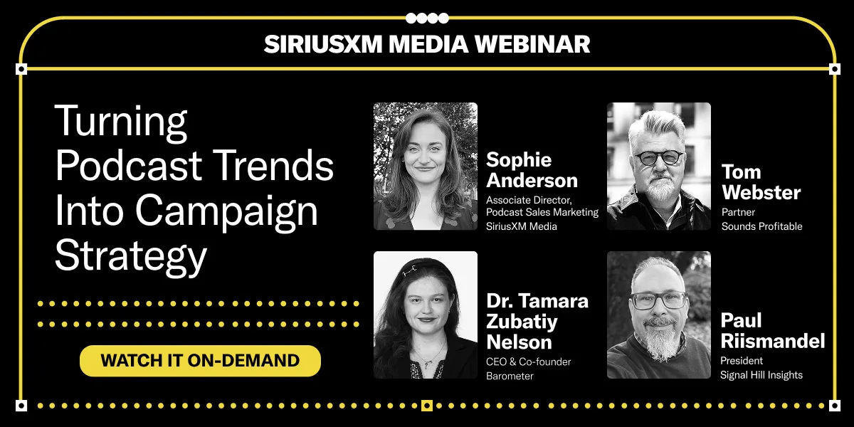 The audio landscape moves fast. Our webinar library keeps you ahead of it. Register for upcoming conversations or dive into past sessions on demand to uncover the trends, data, and strategies shaping the future of digital audio advertising.
